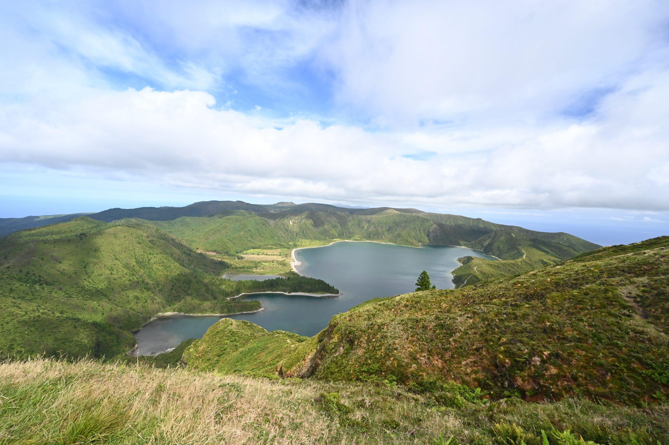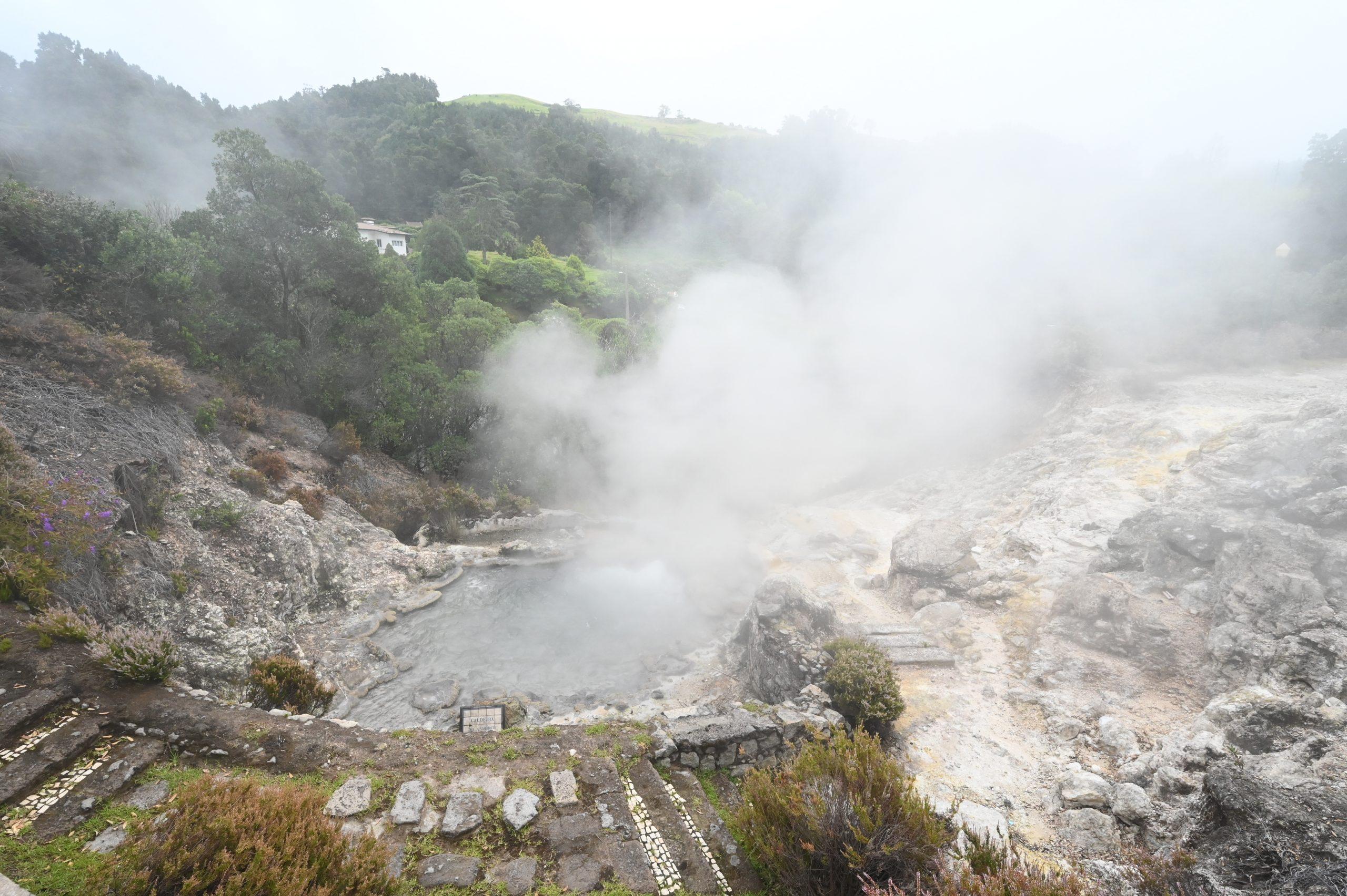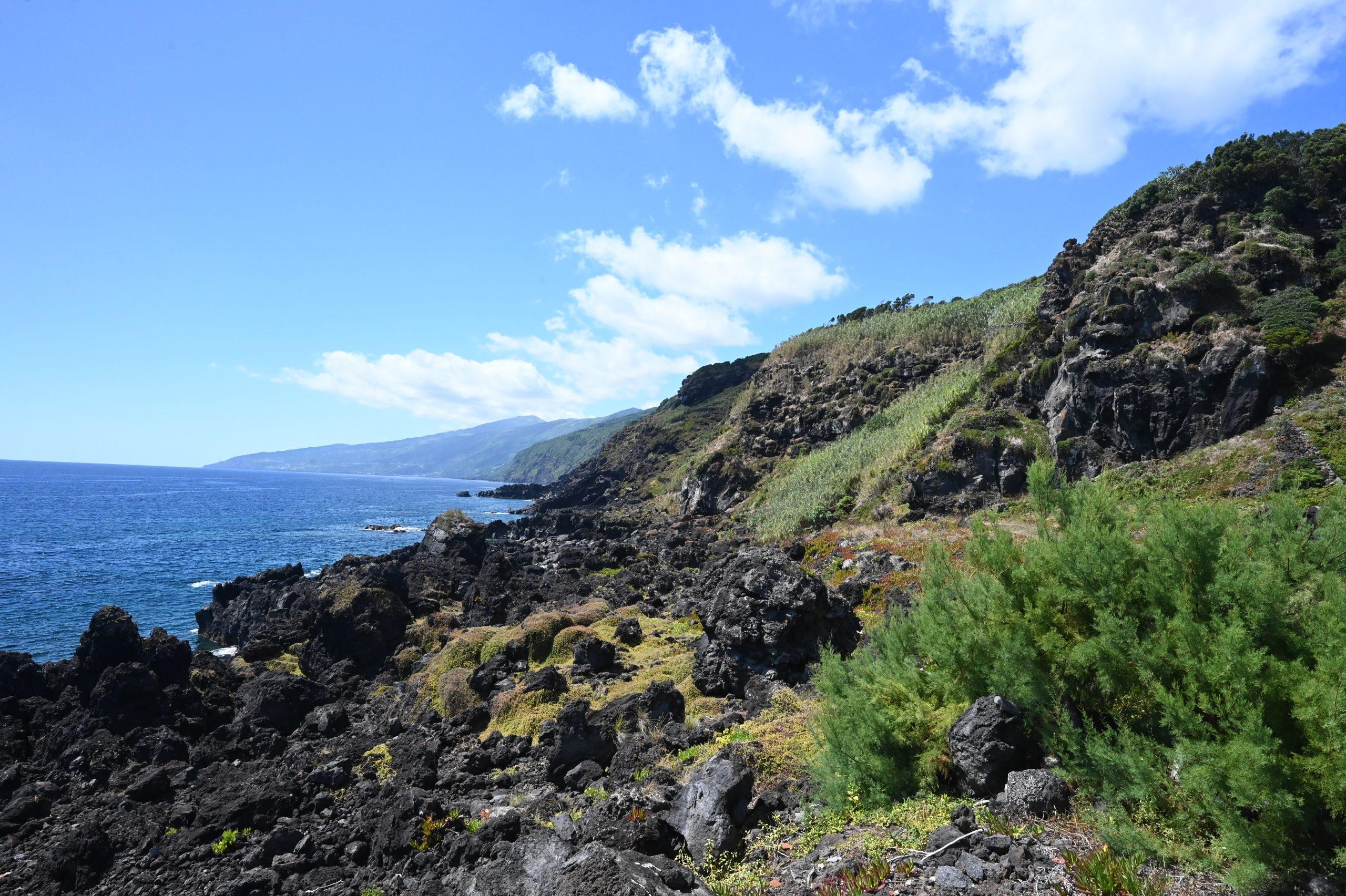 Los ging es mit sechs Tagen auf der größten Insel, São Miguel. In den ersten beiden Tagen fuhr ich um die Insel. Es gibt einige schöne Küstenabschnitte. Vieles ist jedoch weniger spektakulär. Man sieht Felsküsten oder Weiden, die bis ans Meer reichen. Die Gegend im Landesinneren erinnert an das Allgäu. Berge, Felder, Kühe. Besonders sehenswert sind die Miradouros, von denen aus man einen wunderschönen Blick auf die Kraterseen der Vulkane hat. Auf São Miguel gibt es ein bis zwei gute Badestellen mit Sandstrand. Dazu gibt es einige Naturbäder, die aber nur bei ruhigem Wellengang nutzbar sind. Die meisten Orte auf São Miguel sind in einem eher schlechten Zustand. Es gibt kaum Infrastruktur, einige wenige Bars und vielleicht mal einen Supermarkt. Die Straßen sind hingegen durchweg sehr gut. Geldtransfer der EU sei Dank. Die Insel ist nur wenig touristisch erschlossen, was jedoch kein Nachteil ist. Es gibt nur wenige ausgewiesene Wanderwege. Um die Vulkane herum sind meist Naturschutzgebiete ausgewiesen. Am besten ist es, einfach loszugehen. Sehr schön und besuchenswert war der Parque Terra Nostra mit seinem wunderschönen Garten. In das Schwefelbecken habe ich mich allerdings nicht gewagt. Ich war jedoch in den eisenhaltigen, warmen Pools von Caldeira Velha, in denen das Wasser auf angenehme 32 Grad erwärmt wird. Ich war an einem Regentag dort, was noch besser war. Sehr empfehlenswert war auch mein Ausflug zum Lagoa do Fogo. Von dort hat man einen tollen Ausblick auf die Vulkankraterseen. Leider habe ich die Caldeira das Sete Cidades nur im Regen und Nebel gesehen. Das fand ich sehr schade, denn so konnte ich keine ordentlichen Bilder machen. Auf São Miguel habe ich an einer Whale-Watching-Tour teilgenommen. Ich habe Kiemen und Flossen von Pott- und Pilotwalen sowie die obligatorischen springenden Delfine gesehen. Wieder einmal habe ich gemerkt, dass ich nicht seefest bin. Sehr spannend waren auch die Schwefelfelder von Furnas, bei denen es heiß und übelriechend aus der Erde kommt. Das landestypische Cocido hat mir jedoch nicht geschmeckt.